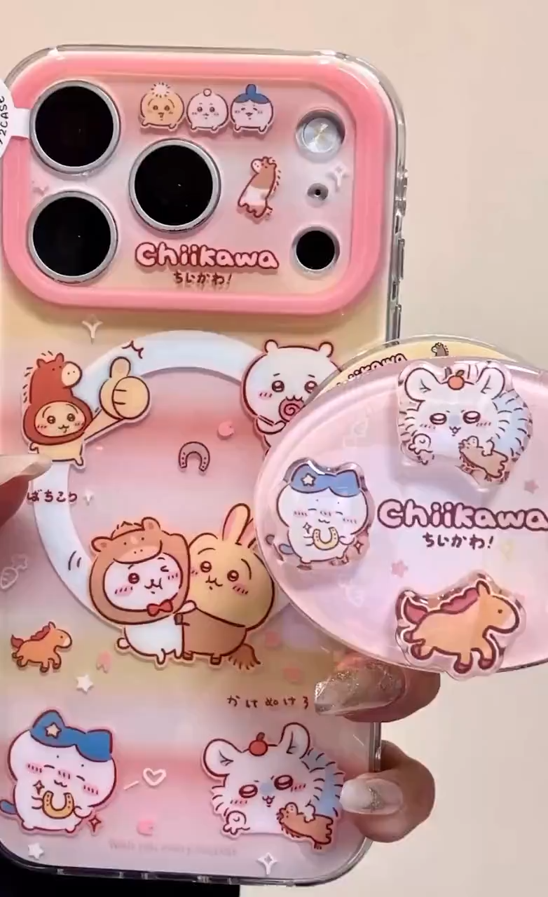 Magsafe対応かわいいちいかわシェイカーグリップケース、ピンクのアニメ動くチャーム付きiPhone 17 16 15 14 13 Pro Maxカバー、かわいいハチワレうさぎギフト、日本語