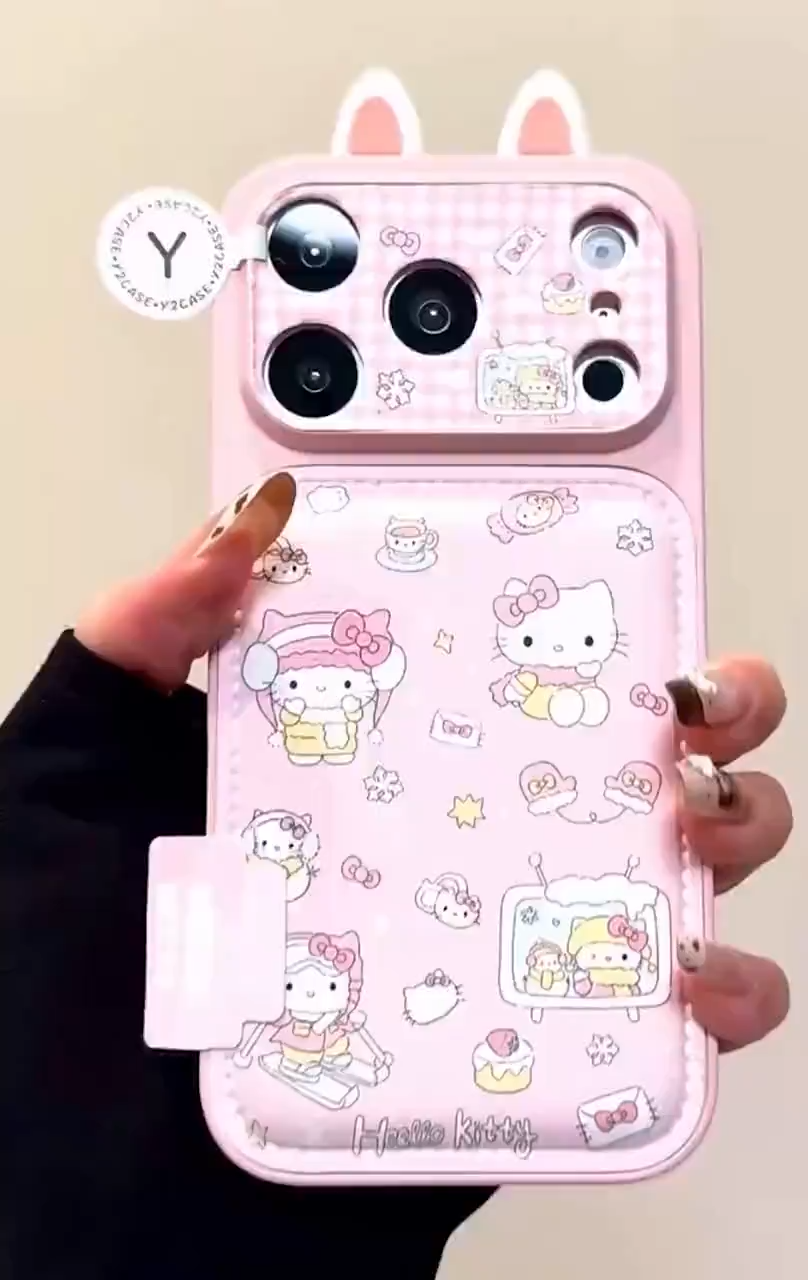 キティ&マイメロディ 折りたたみスタンド iPhone 17 Pro Max ケース iPhone 16 Pro/15 Pro/14 /13 用 可愛い シリコン 革風 ソフトケース 衝撃保護